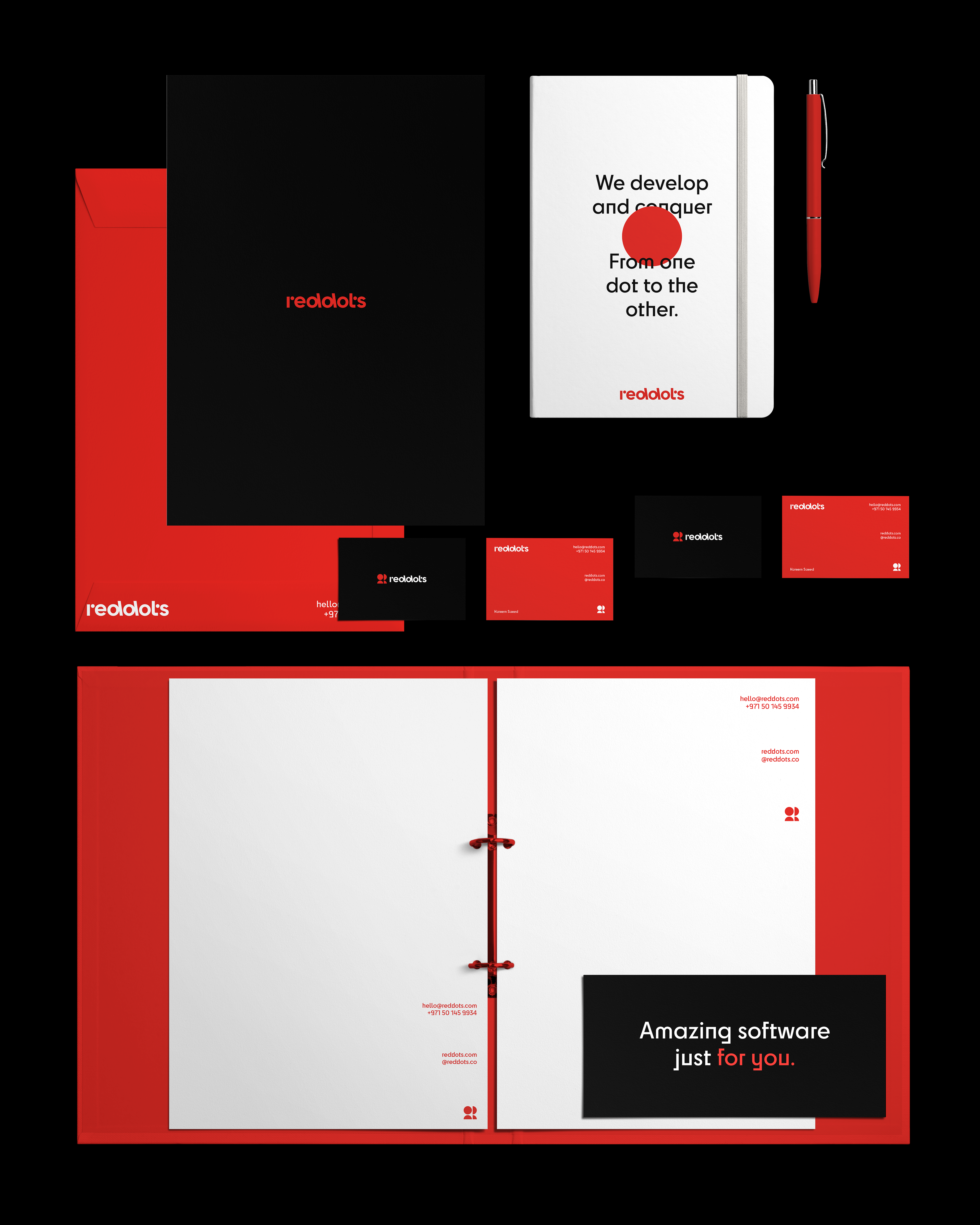 The color red, which was certainly based on the name "reddots", represents energy and dynamism. By combining this color with white and black, we transmit sophistication, elegance and professionalism. This color combination creates a perfect balance between visual attractiveness and corporate seriousness, demonstrating its ability to offer high-level technological solutions for your company. Our title and backing typography conveys professionalism, technology and modernity.