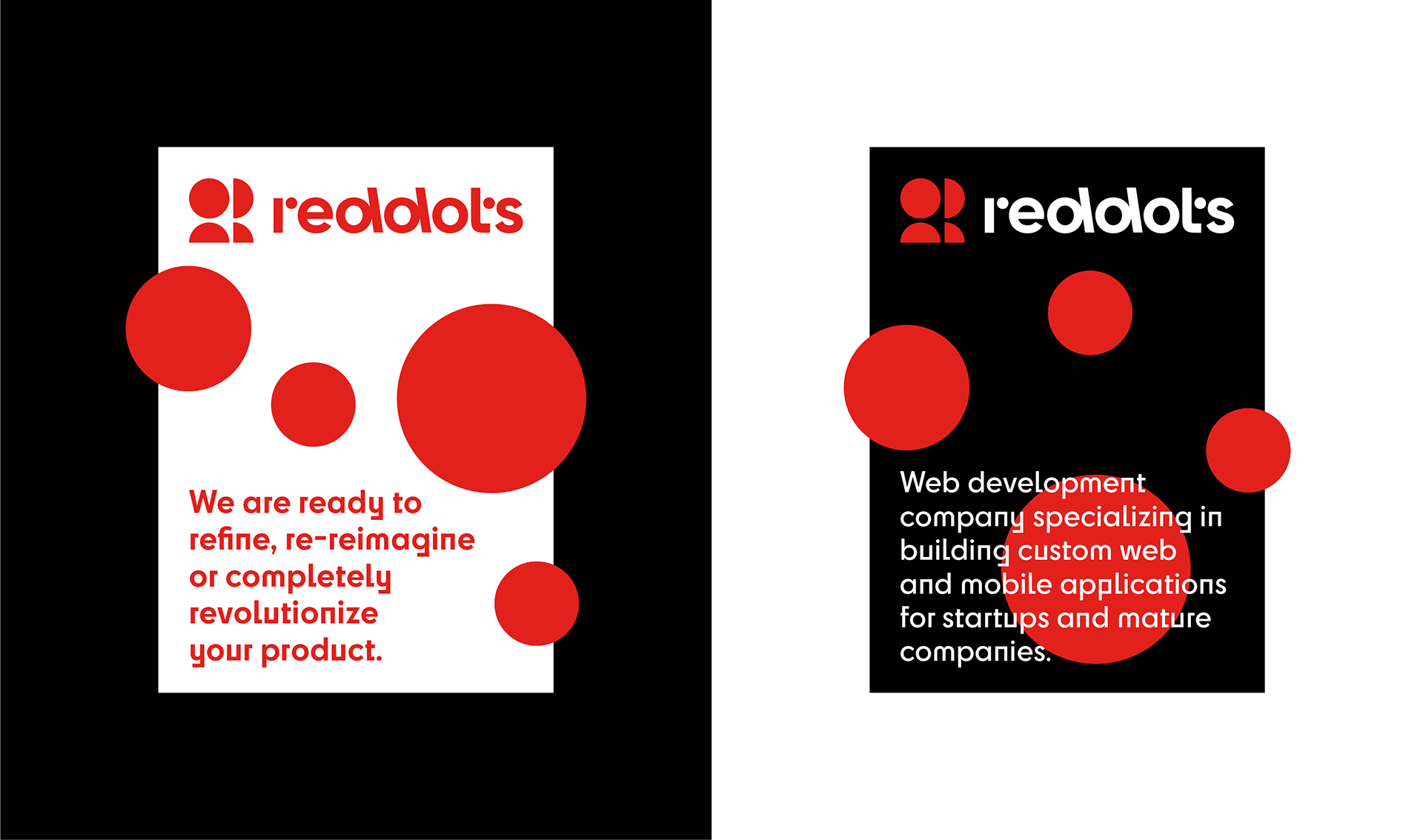 The Reddots logo combines dots, the initial "R" and human representation, emphasizing that the customer is at the center of everything we do, demonstrating commitment to the success of your business and your customer's customer. The typography of the logo is minimalist and a "dot" element was also used as details on the letter "r" and "t".