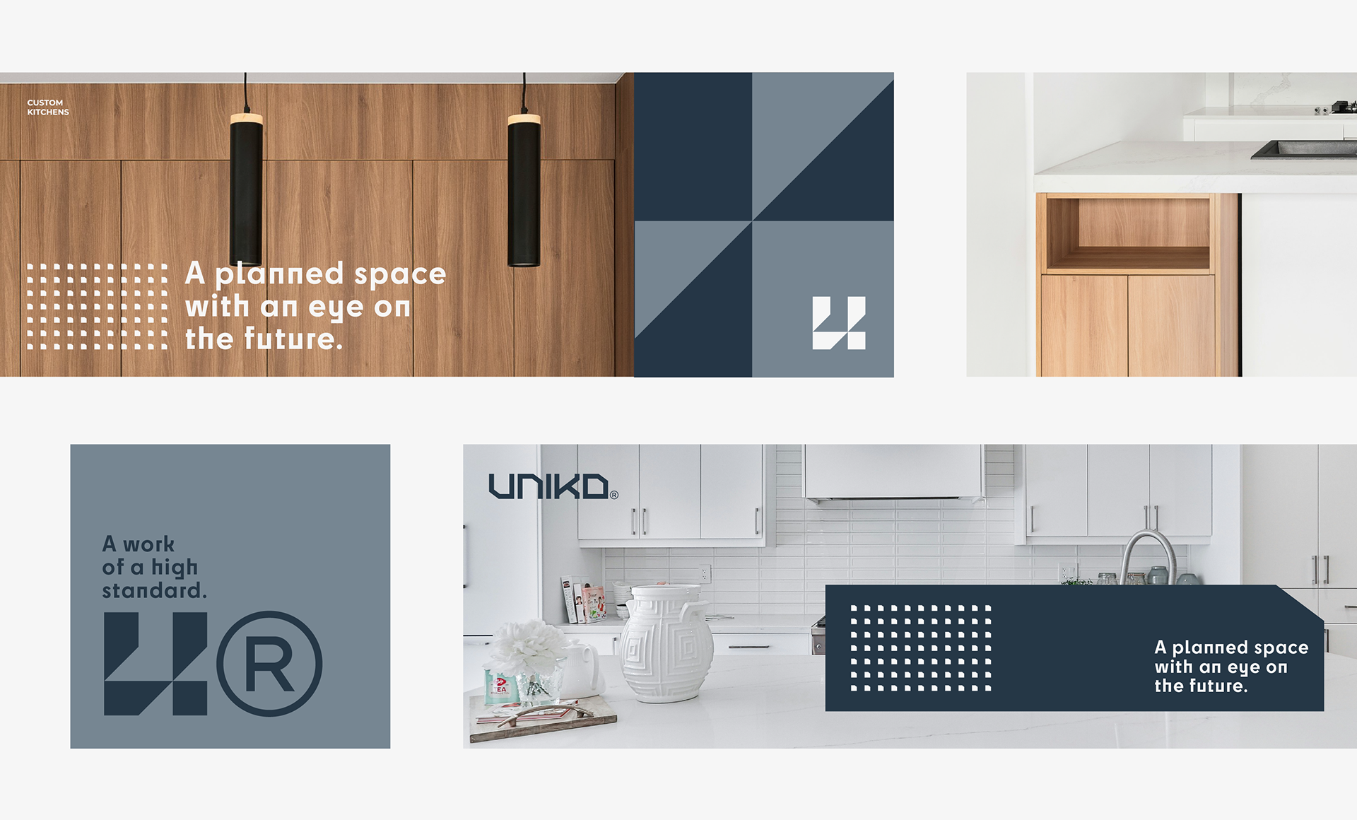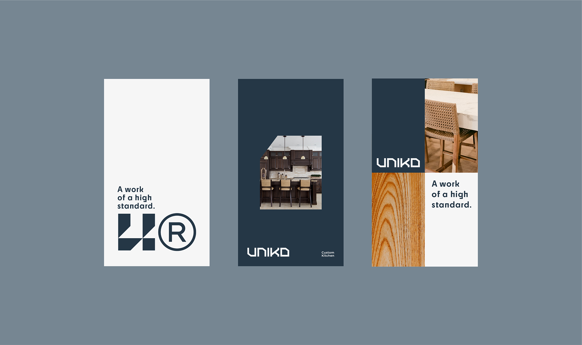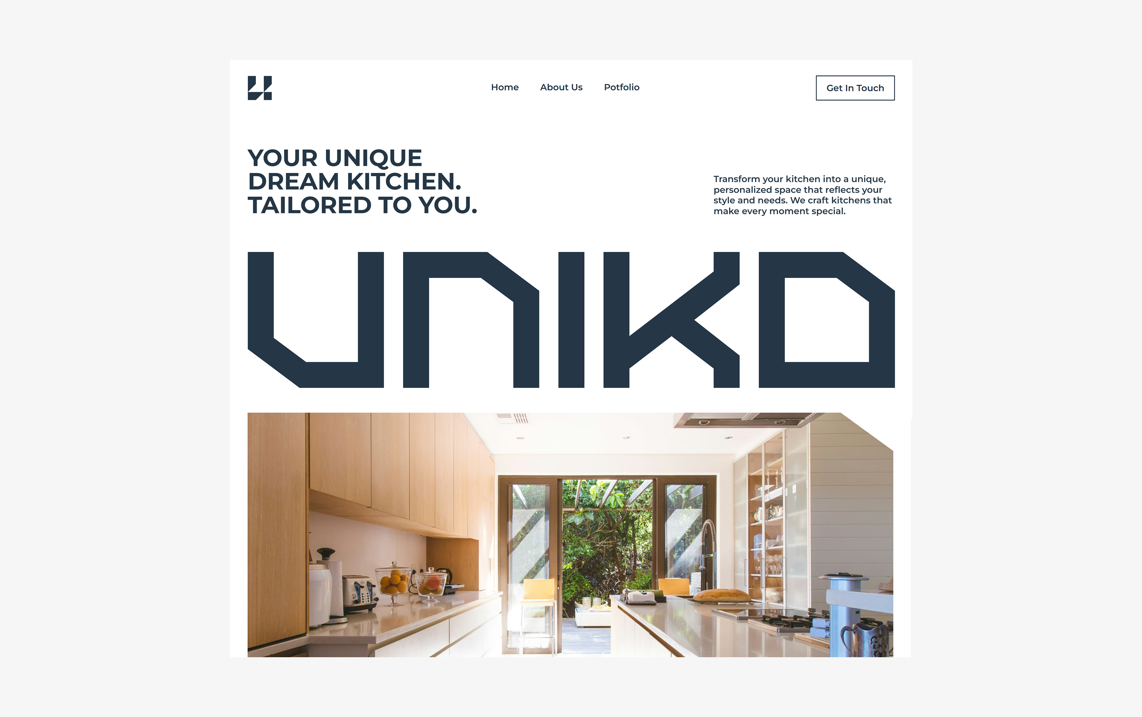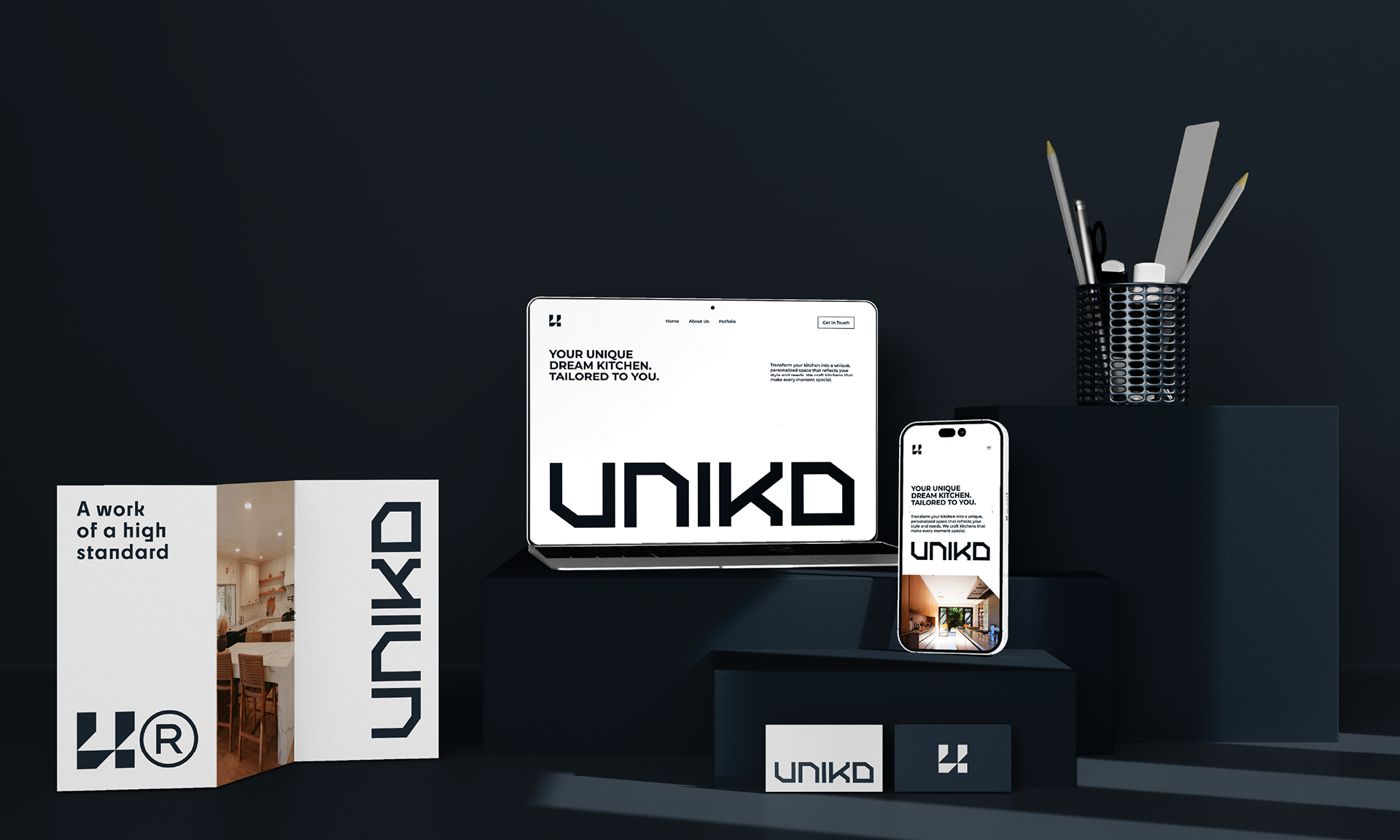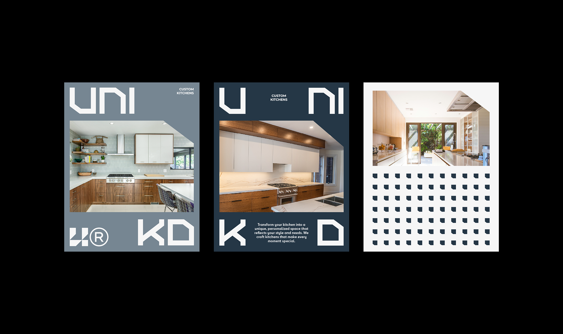 Uniko creates custom kitchens that blend design, functionality, and craftsmanship. With a focus on quality materials and attention to detail, we transform kitchens into unique, personalized spaces. The name "Uniko" conveys uniqueness and distinction. The Uniko Kitchens visual identity was designed to reflect modernity, innovation, and exclusivity.