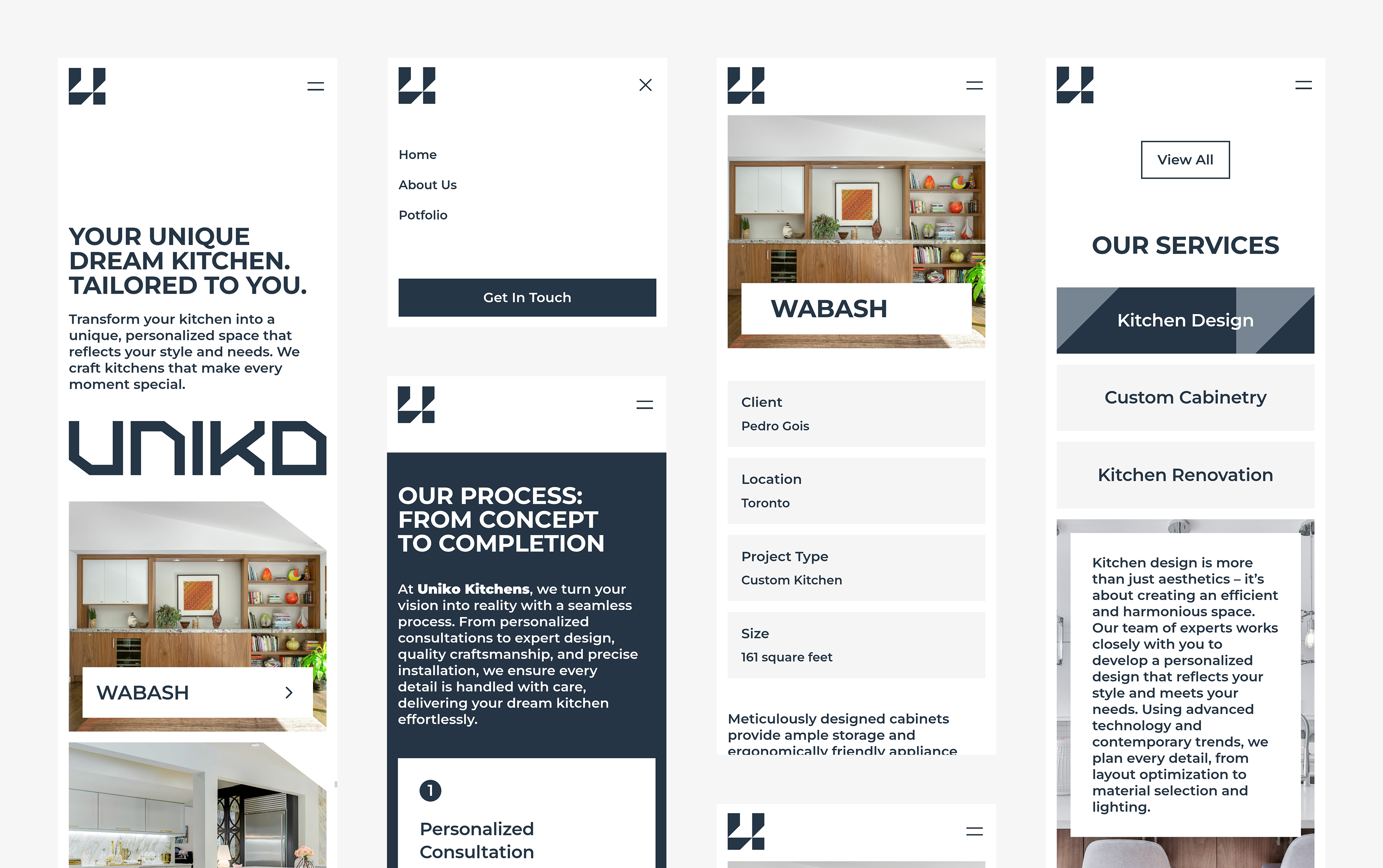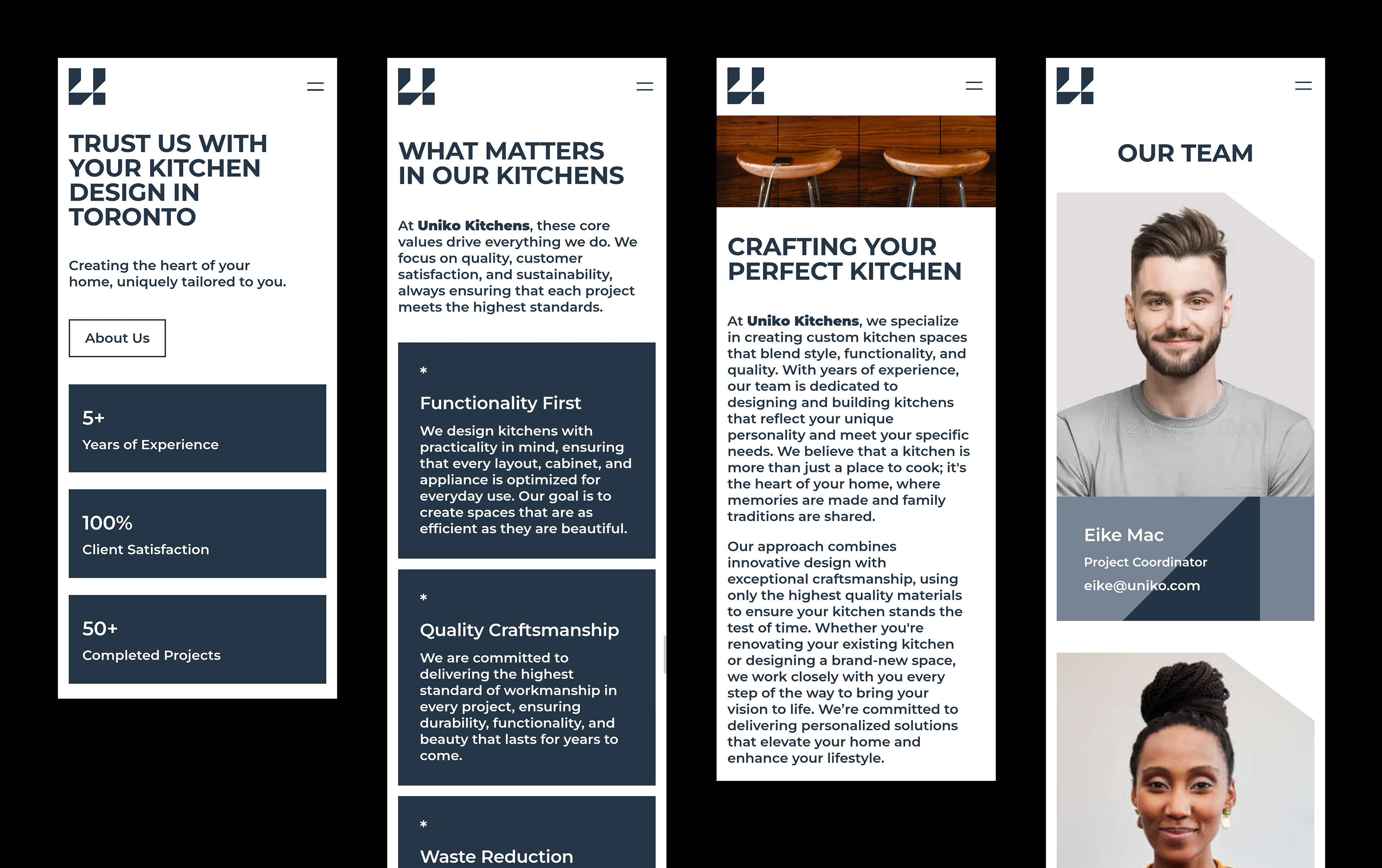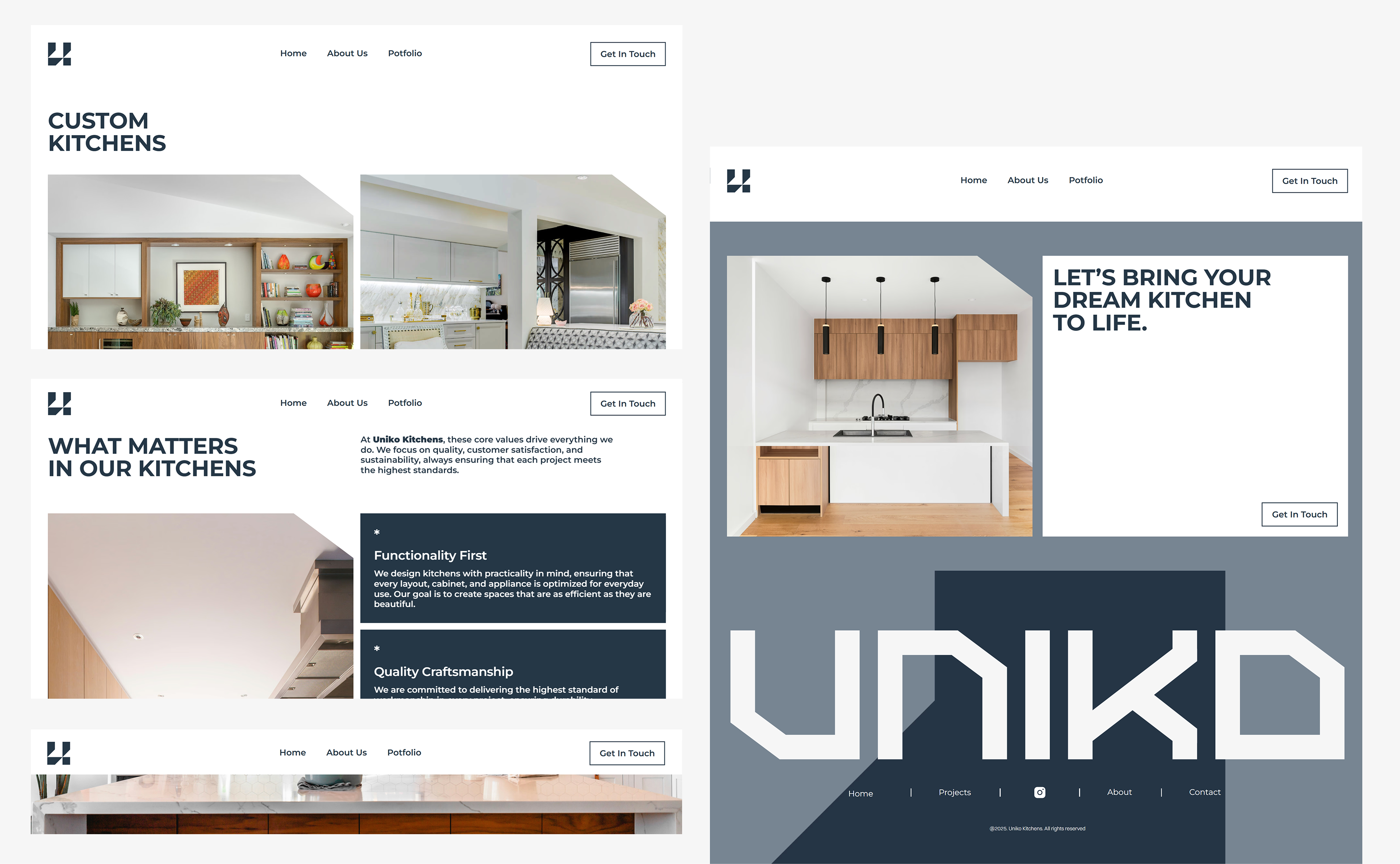 The Uniko website was designed to reflect the brand’s core values: elegance, precision, and individuality. With a clean and minimal layout, the interface highlights the craftsmanship and premium quality behind every custom kitchen. The structure of the site is intuitive, guiding the user through Uniko’s process, values, and portfolio in a clear and elegant way. Each section is designed to inspire trust and showcase the brand’s attention to detail, just like in their work.